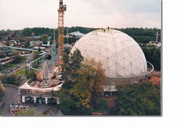 Die ikonische goldene kugel mit der simulatorfahrt im phantasialand wurde abgerissen.